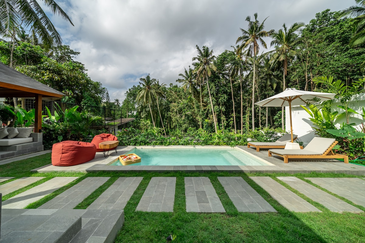 Brand New 2BR Villa in the Cultural Heart of Ubud: • Stylish, air-conditioned bedrooms with garden views • En-suite bathrooms with amenities, slippers & hairdryers; master suite includes a bathtub • Fully equipped kitchen & dining area • Large private pool surrounded by tropical greenery, spacious patio for lounging • 300 Mbps Wi-Fi • Daily cleaning with fresh towels & linens • Baby cot & high chair on request • Concierge service for spa bookings,scooter rentals & more • PS5, Netflix on request