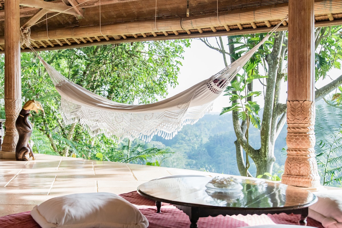 Place where silence speaks…experience being one with nature,yet in comfort cozy space…auspicious healing energy of bunut tree,stunning view to the volcanoes overlooking rain forest,sound of the running water from jungle river,natural springs access...perfect for grounding,connecting with oneself ,rejuvenating and healing. Spiritual retreat.