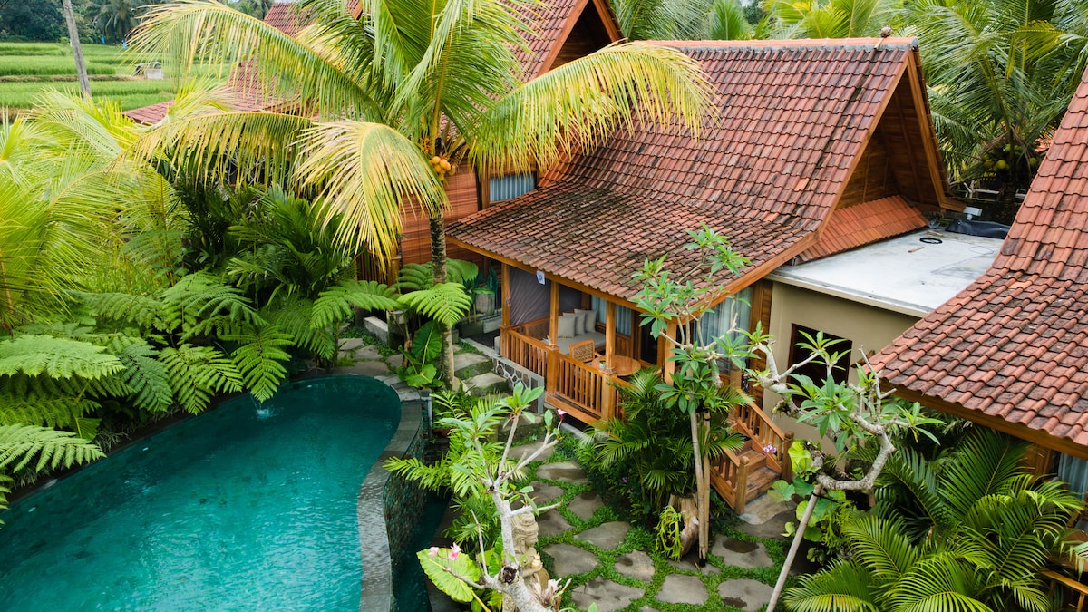 OM SWASTIASTU from a heart of Bali UBUD.A magical wooden house in the middle of rice fields with outdoor living areas, awesome tropical garden, a refreshing private pool and spacious terrace overlooking picturesque rice fields with the gorgeous sunset views is perfect gateway for you who wish to stay in Bali to feel the magical spirit of Ubud.