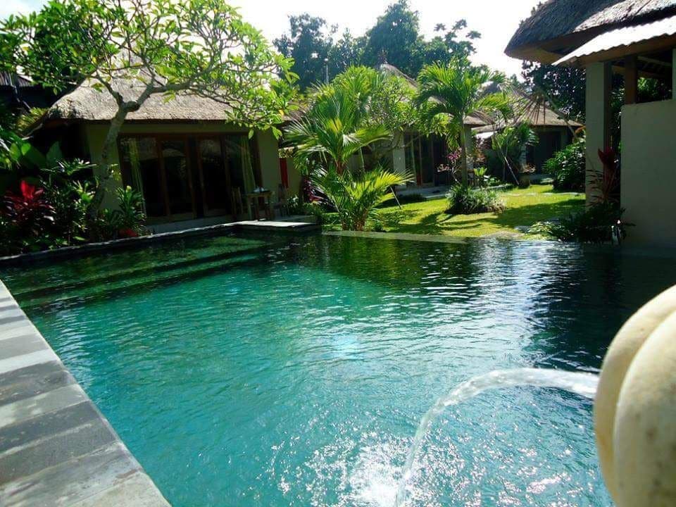 Sradha Villa with a Joglo style in Penestanan Village, Peaceful and quiet around 300m from the main road Small private pool Bedroom with AC Gazebo Fish Pond Green and flowering plants Outdoor sitting and dining area on the porch/Veranda Beautiful Garden Cleaning Options Can fix Tours/cars
