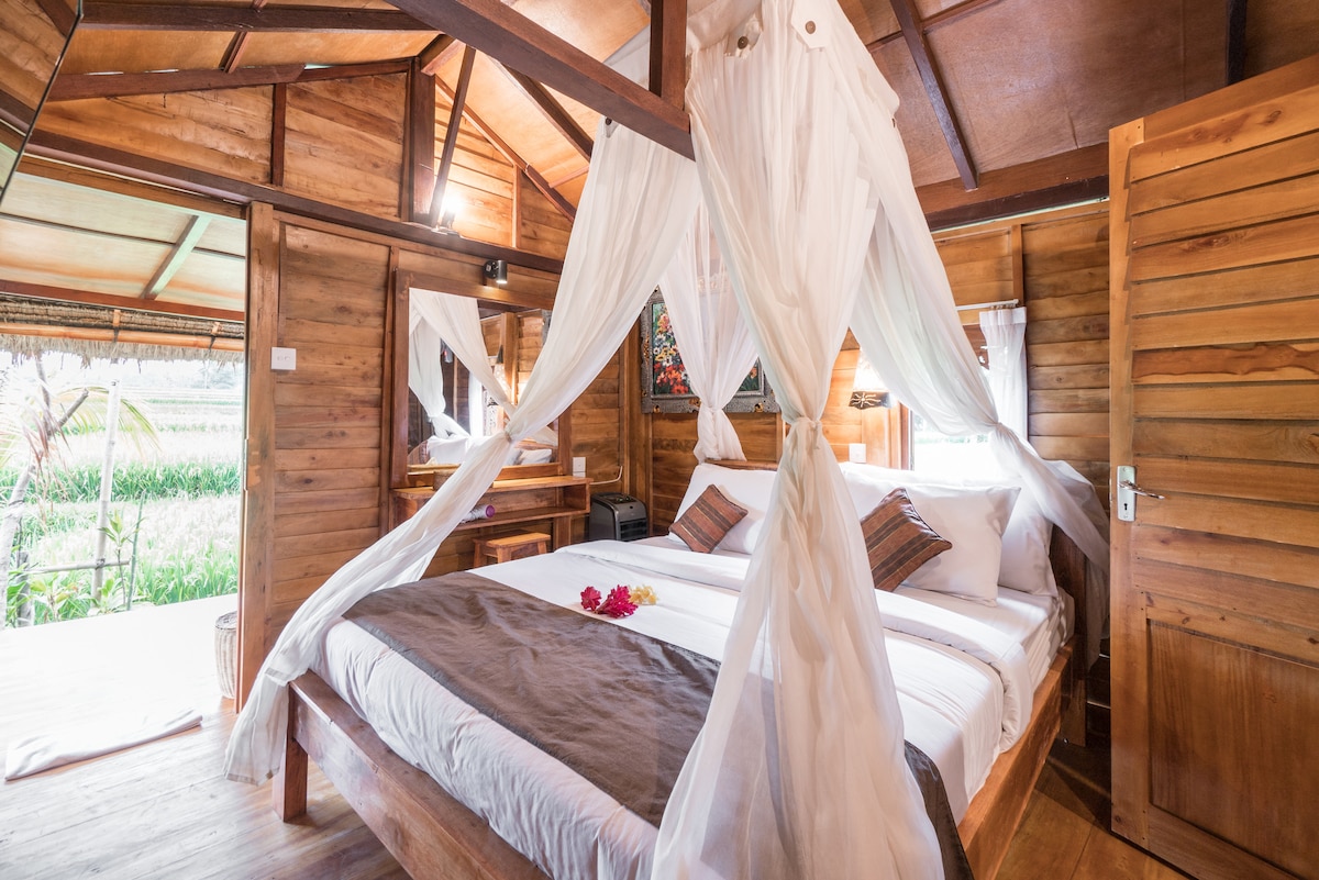 1卧室Joglo,位于乌布,可欣赏稻田美景