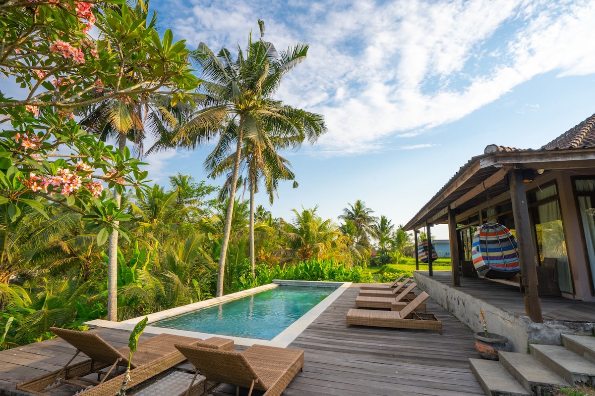 舒适的现代乌布别墅,带泳池和热带花园,位于可爱的巴厘岛大院