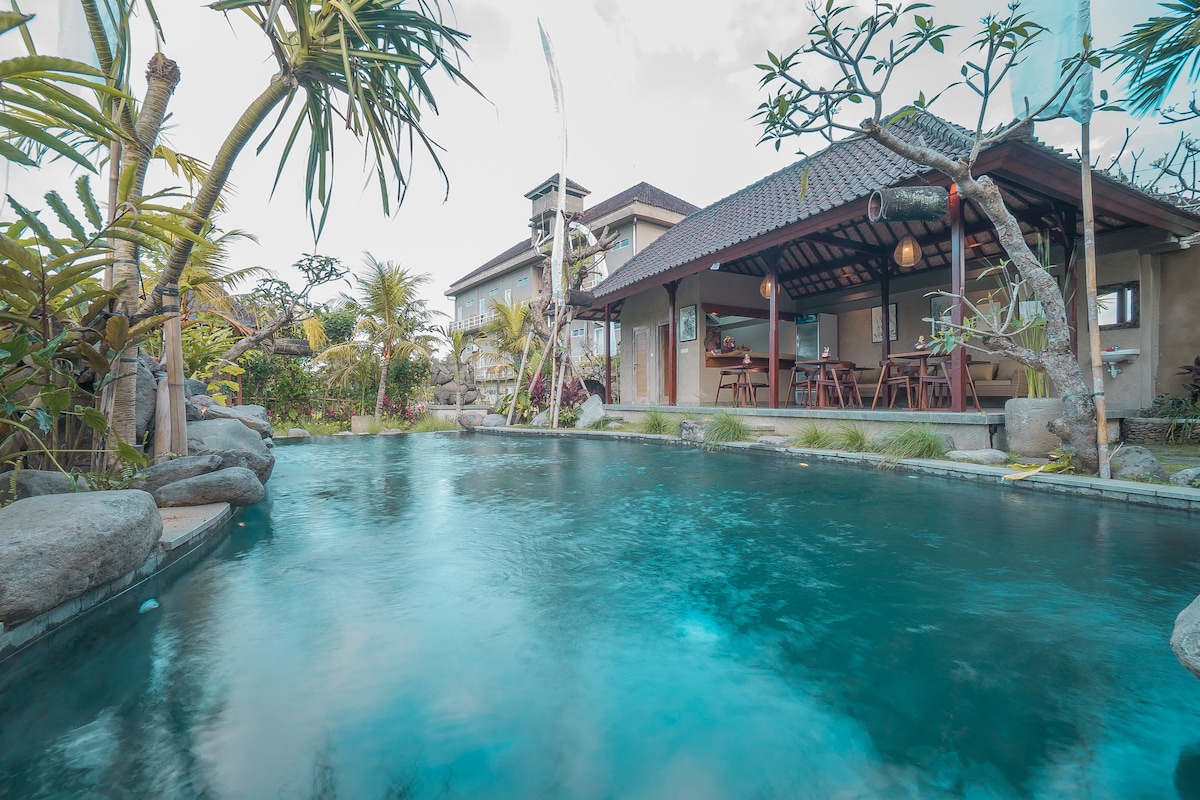 Relax with the whole family at this peaceful place to stay. our private villa also has spacious space for your enjoyable holiday, we are just around 25 minutes drive to ubud center