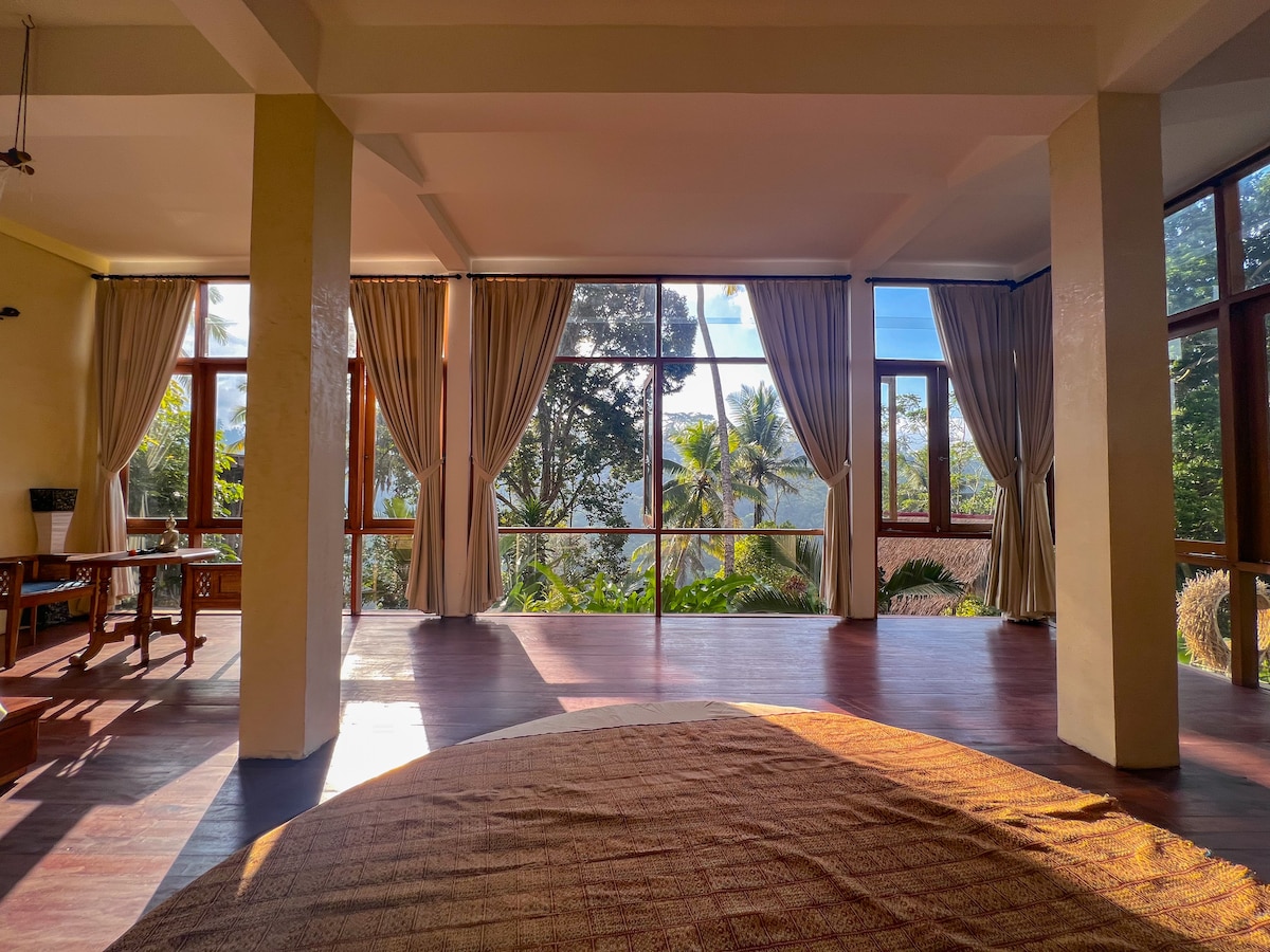 Experience ultimate relaxation in the heart of Bali at exclusive luxury bamboo villa in Sidemen. Wake up to a breathtaking view of Mount Agung right from your bed, and unwind in your private Jacuzzi hot pool surrounded by lush nature. Enjoy a complimentary breakfast each morning, and savor delicious meals at our restaurant prepared with fresh, organic produce from our own farm. A dedicated butler is always on hand to make your stay seamless and truly indulgent.