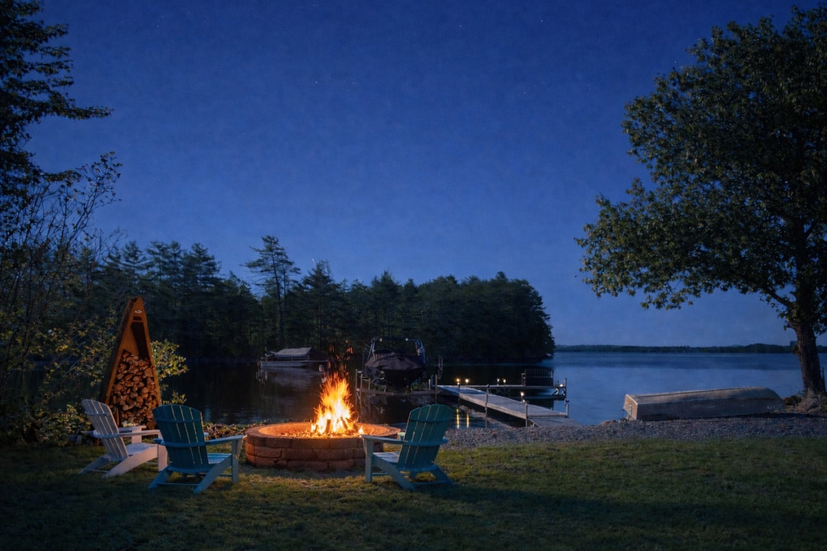 湖滨-水疗浴缸-火坑-设施齐全的厨房-独木舟