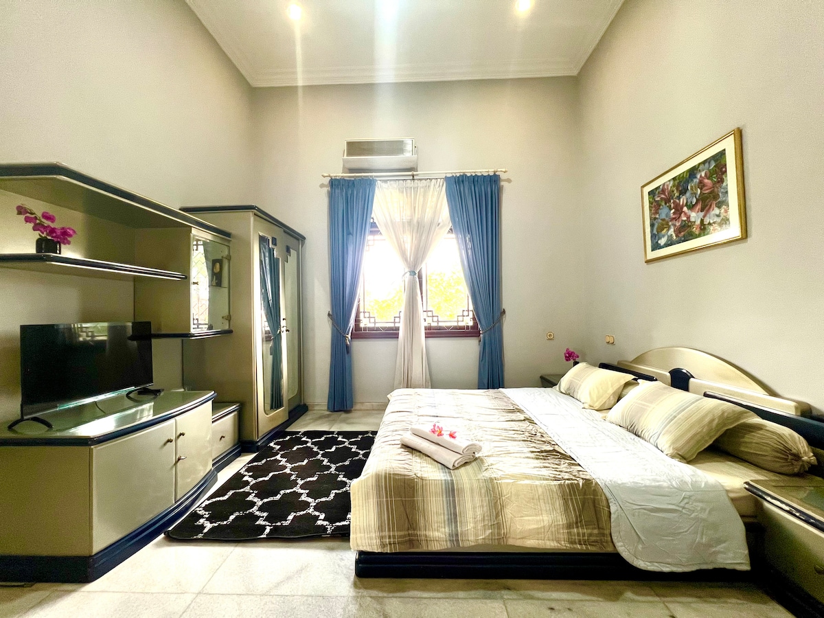 Cocok untuk keluarga kecil. Nyaman dan luas. Kamar mandi dengan water heater dan bathtub. Sejuk dengan atap yang tinggi. Aesthetic
