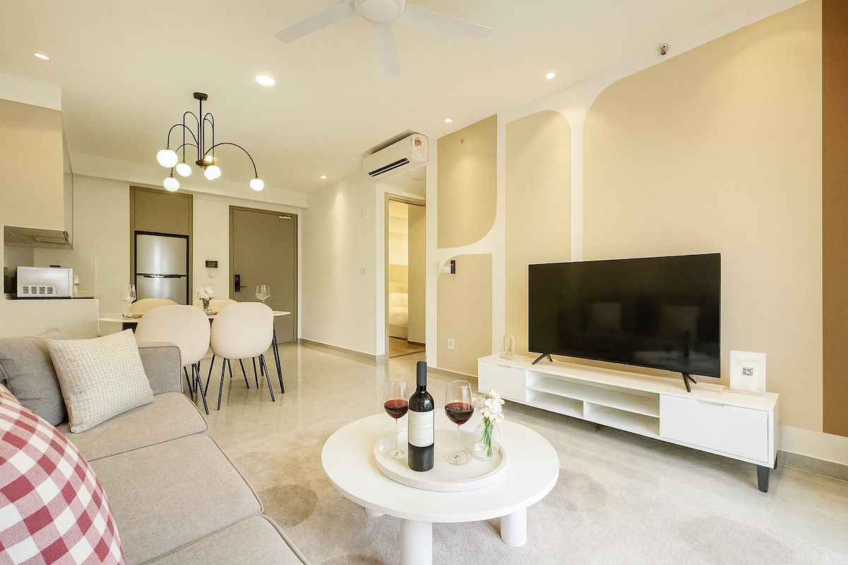 Sit back and relax in this calm, stylish space. Why Seashell suite at Lucentia Residence - Best views of KL - Beautifully decorated with a fun spirit - Centrally located & attached to public transit hub - Fast wifi - 2 TVs with Netflix & others - 2 gorgeous pools - Family friendly with baby crib & highchair - Gym, pool table, BBQ pits, piano - Garage parking - Recommended to Sleeps 6, max 8 person - LaLaPort Shopping Mall & the WOW entertainment street are attached - Grocery, drug store & Cinema