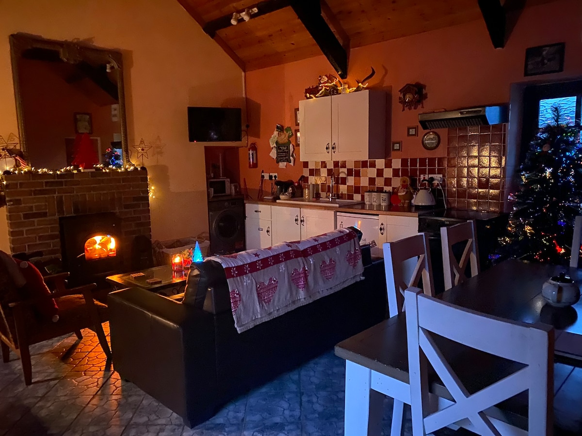 Self catering luxury glamping pod . A cosy private space nestled by the side of our cottage. It has a kitchenette with; Microwave Mini fridge & ice box Kettle Toaster Dolce Gusto coffee machine. Ensuite shower Double bed and a sofa. TV plays DVDs only , with a good selection of DVDs. There is no cooker in the pod but there is a Gas Plancha (Hot Plate) and a single gas ring situated in an outside cooking station next to the pod. WIFI