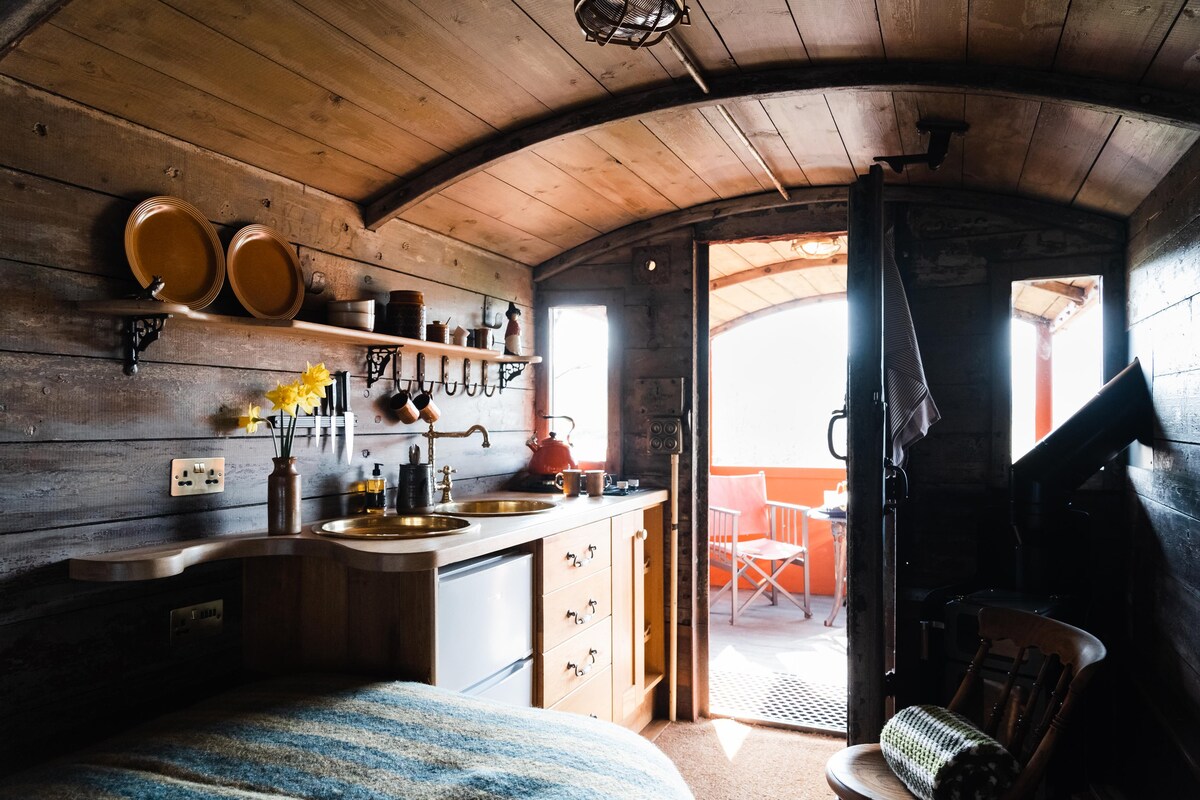 Step aboard The Toad, a beautifully restored 1921 GWR brake van (AKA Toad Wagon), once a vital part of post-war goods trains. Weighing 20 tons and brimming with original rustic features, this historic wagon offers characterful self-catering accommodation with a touch of luxury. Enjoy your own private en-suite with hot shower, wood-fired hot tub, and peaceful soundtrack of birdsong and country life. The Toad makes a fantastic all-year-round base to explore the Brecon Beacons and beyond.