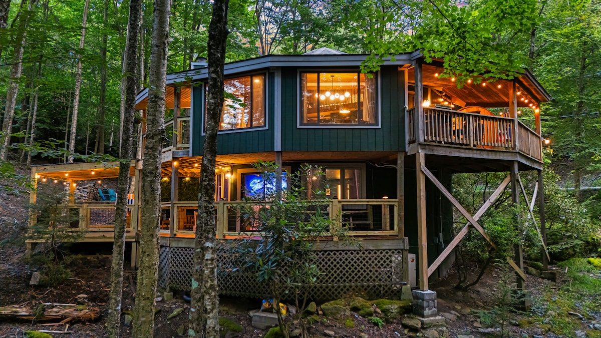 Most Wish-listed Airbnb in the US • Summer 2022 Looking for a modern luxe romantic getaway for two? A peaceful mountain retreat to reconnect with nature and each other? Slow down and relax at the Glass Treehouse. Enjoy a waterfall-laced woodland escape with giant boulders. Minutes from dining, wine tasting, breweries, shopping, art galleries, hiking, skiing, rafting and more. Centrally located between Boone, Blowing Rock, Banner Elk, Grandfather Mt, Sugar Mt.