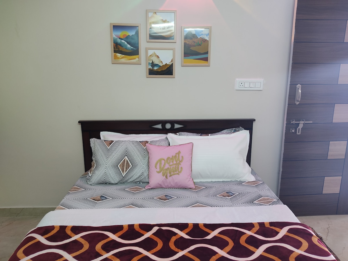 Modern Studio in Bangalore | WiFi • Workspace • Comfort Stay in a calm, stylish studio apartment in Bangalore, thoughtfully designed for solo travelers, couples, and business guests. With soothing blue interiors, premium furnishings, and a dedicated workspace, this studio offers the perfect balance of comfort, productivity, and relaxation. Enjoy a restful night on a comfortable queen-size bed with fresh linen, plush pillows, and a cozy, well-lit ambiance.