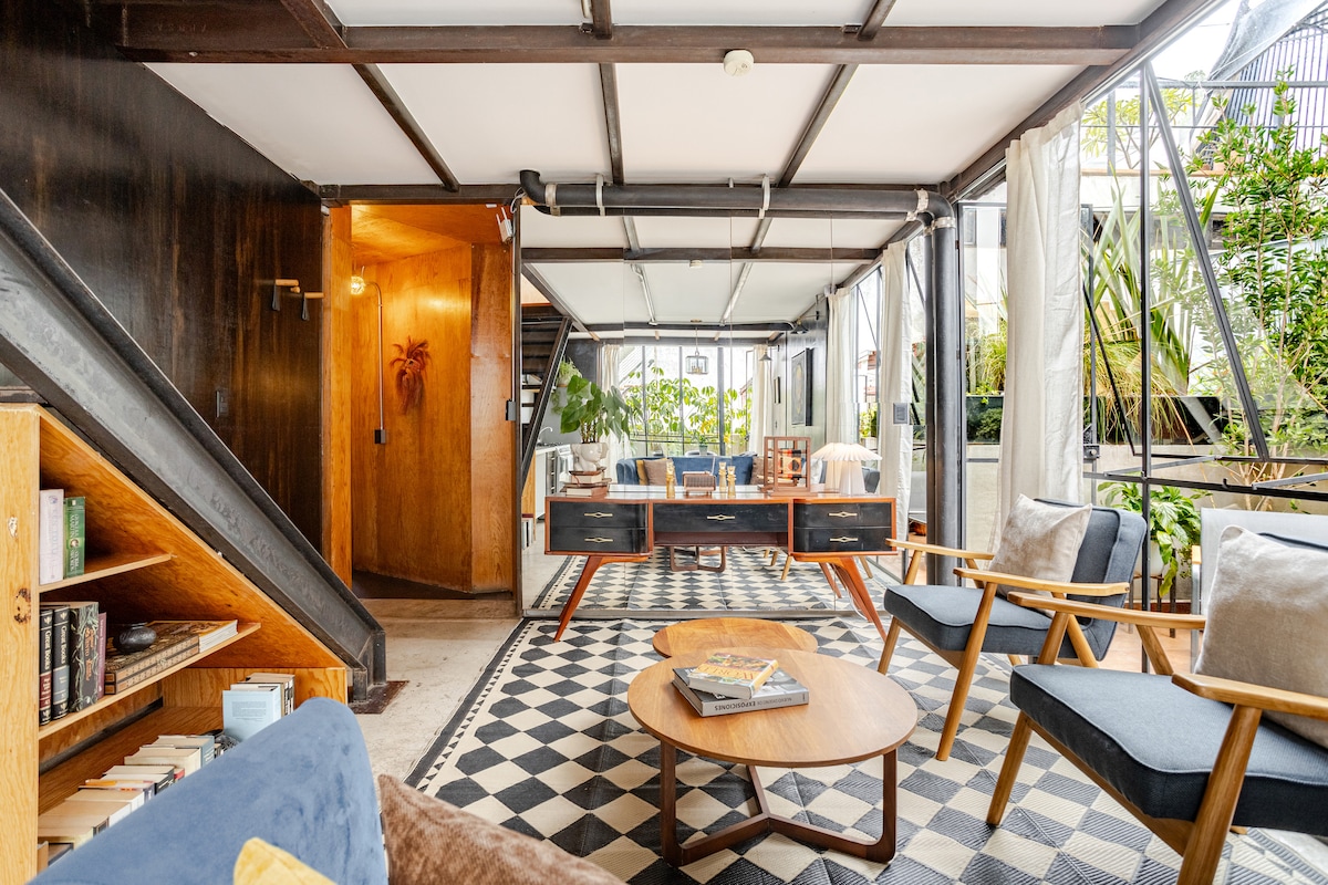 ¡Bienvenidos a Coyoacán! Estupendo loft de 120 m2 ubicado a tan solo 5 minutos caminando del Centro de Coyoacán. Vive la experiencia de este tranquilo e iluminado espacio abierto, ideal para descansar o trabajar y decorado con objetos llenos de historias. El loft se encuentra en el tercer piso de Casa Mavi, una antigua fábrica que fue remodelada para crear un lugar lleno de encanto que lo hace único. Cuenta con terrazas de uso común. Con opción para un tercer huésped. Wifi 200 megas.