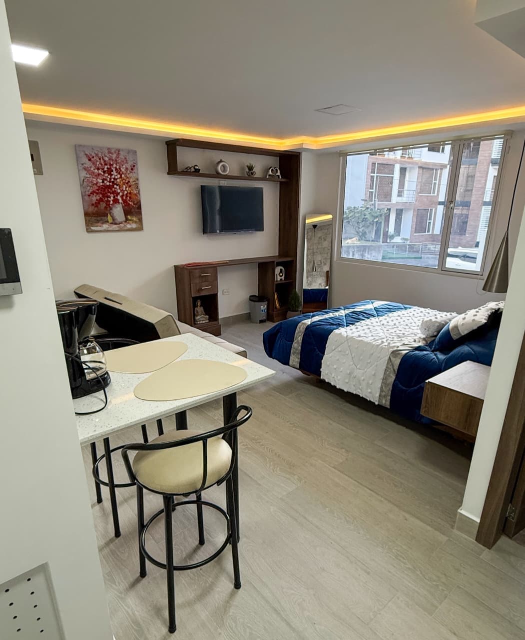 Vive experiencias inolvidables con tu familia o grupo de amigos en este apartamento muy elegante, moderno y con gran estilo. Ubicado en 3er piso, totalmente amoblado, con vista panorámica a la ciudad y montañas; cómodo en zona céntrica y muy segura. Tiene sala, smartv, comedor, cocina, baño social, 3 dormitorios, 2 baños completos, 2 balcones, acceso a la terraza. Wi-Fi, internet, agua caliente (24 horas) garaje automatizado privado para 1 auto. Camas: 3 (2 Queen, 1 Full) Capacidad: 6 huéspedes.