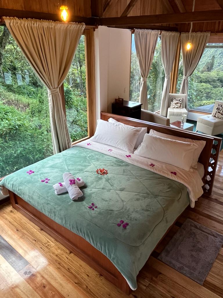 Hermosa cabaña rodeada por un bosque mágico, ideal para desconectar del bullicio de la ciudad. Sumérgete en el corazón de las montañas más impresionantes de Ecuador y deja que las vistas espectaculares alimenten tu espíritu. Explora nuestros senderos, donde descubrirás una abundante variedad de orquídeas, majestuosos árboles, fauna silvestre y un caudaloso río. Si buscas paz y conexión con la naturaleza, este lugar es perfecto para una escapada tranquila y revitalizante.
