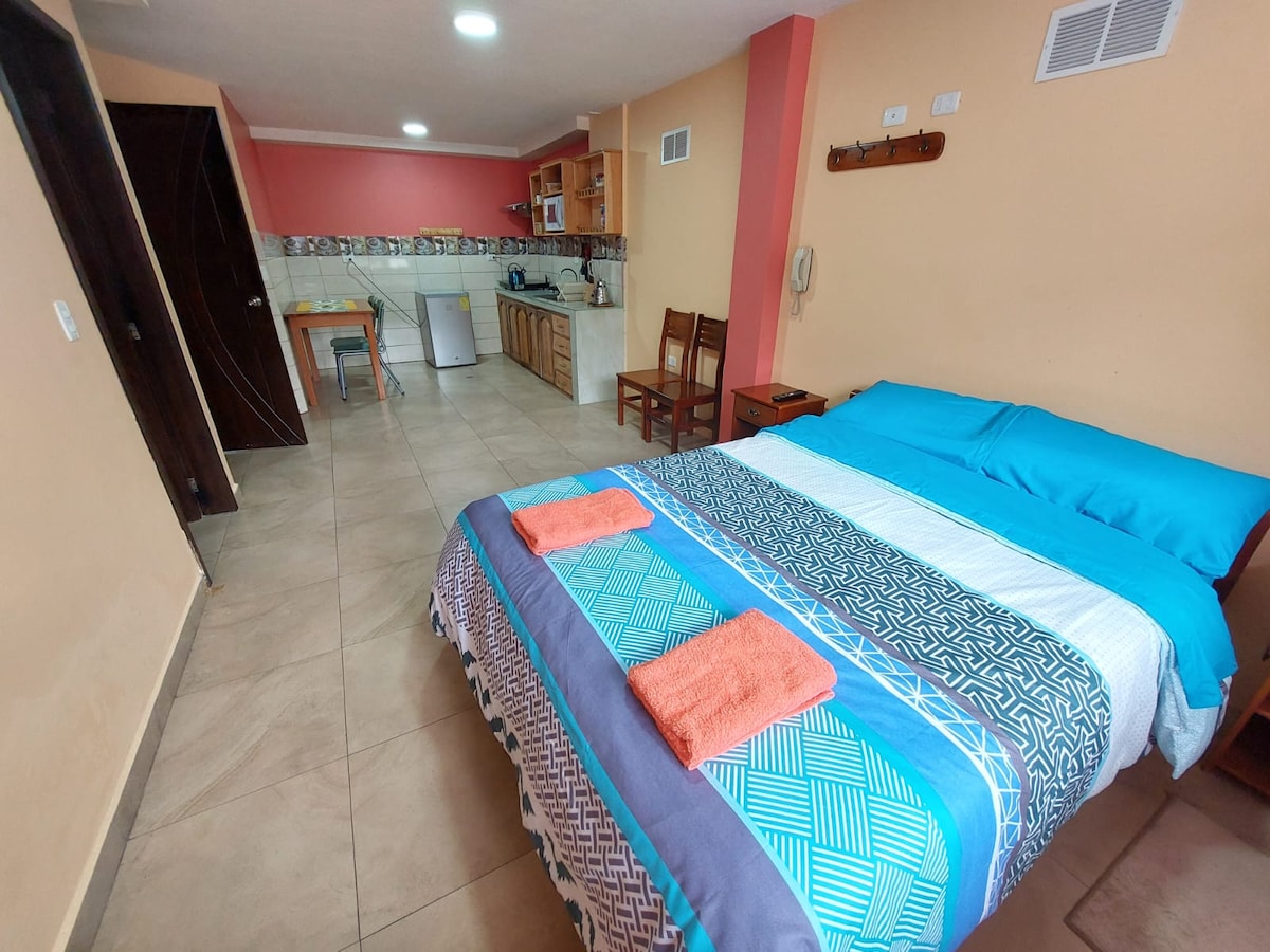 "Discover our Ecuadorian minimalist Suite! Immerse yourself in luxury and nature with extraordinary landscapes and serene decor. Equipped with kitchen utensils, a 43" TV with Netflix, and a high-quality mattress for an unparalleled night's rest. Experience hospitality excellence in a sophisticated and welcoming environment. We await you for a unique experience!"