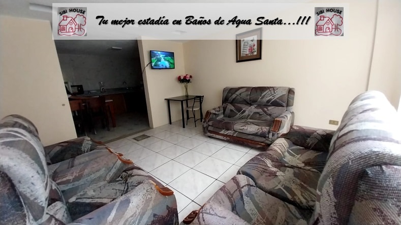La casa es independiente, completamente equipada y amoblada, ubicada a 500 metros del centro de la turística ciudad de Baños y cerca a las piscinas de agua termal, posee amplias áreas verde, donde se puede hacer camping, disfrutar de la zona BBQ, parqueadero para 4 vehículos, vista al volcán Tungurahua y las montañas que rodean la ciudad. En su estadía podrá sentir el calor de hogar, por la comodidad, claridad de sus espacios y amplia área verde.