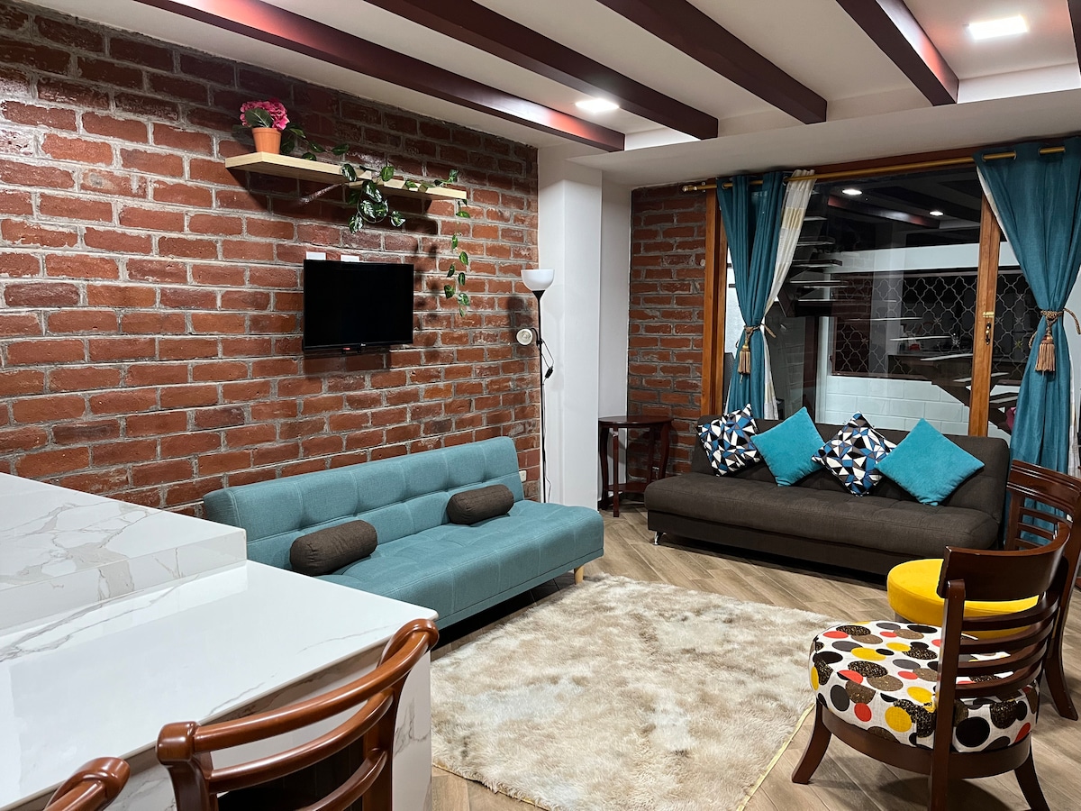 Este alojamiento brinda todas las comodidades necesarias para que tu estadía sea muy confortable y satisfactoria, estando en el centro de la Ciudad de Baños, esta ubicado en la zona rosa de la ciudad (por lo cual podría haber ruido dependiendo del día de alojamiento), teniendo a su alcance, restaurantes, bares, discotecas, tiendas, agencias de turismo interno, supermercado entre otros servicios. El parqueadero se encuentra a dos casas del departamento, el lugar es muy seguro para los vehículos