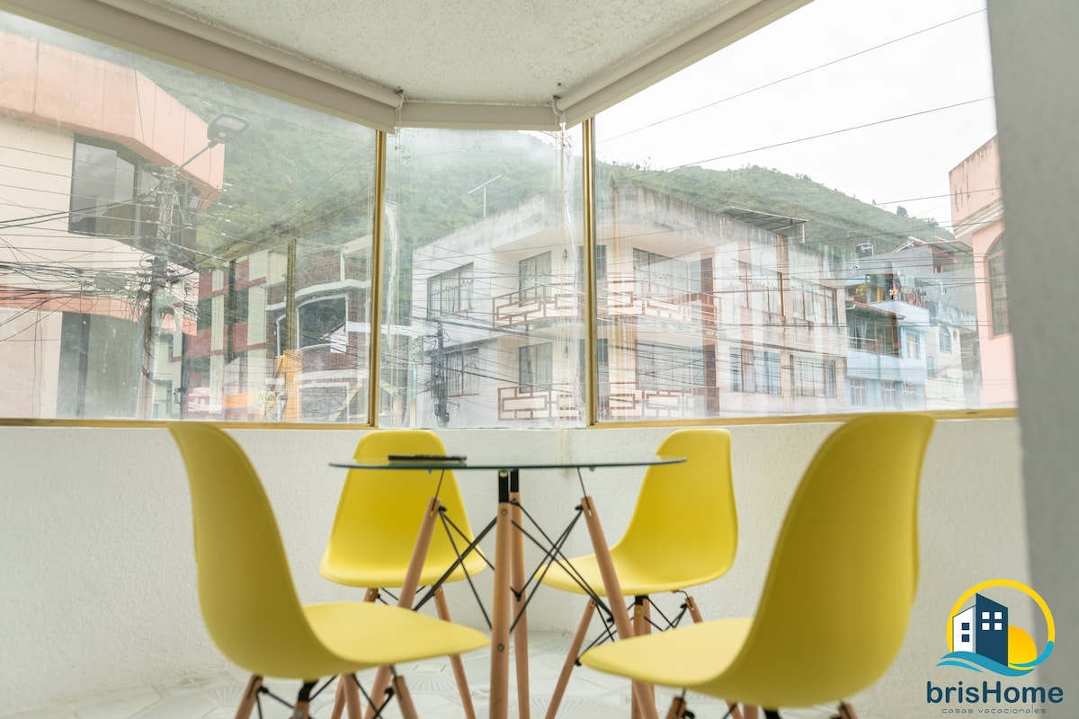 Penthouse de lujo en Baños, Ecuador, ideal para desconectar y compartir momentos inolvidables. Espacio moderno, amplio y acogedor, con vista a las montañas, jacuzzi, sauna y asador al aire libre. A solo 3 min en auto o 15 caminando del centro, cerca de cascadas, termas y senderos de aventura. Perfecto para familias, parejas o grupos (hasta 6 personas). Incluye botella de vino de cortesía y toda la buena vibra para que te sientas como en casa… ¡o mejor!