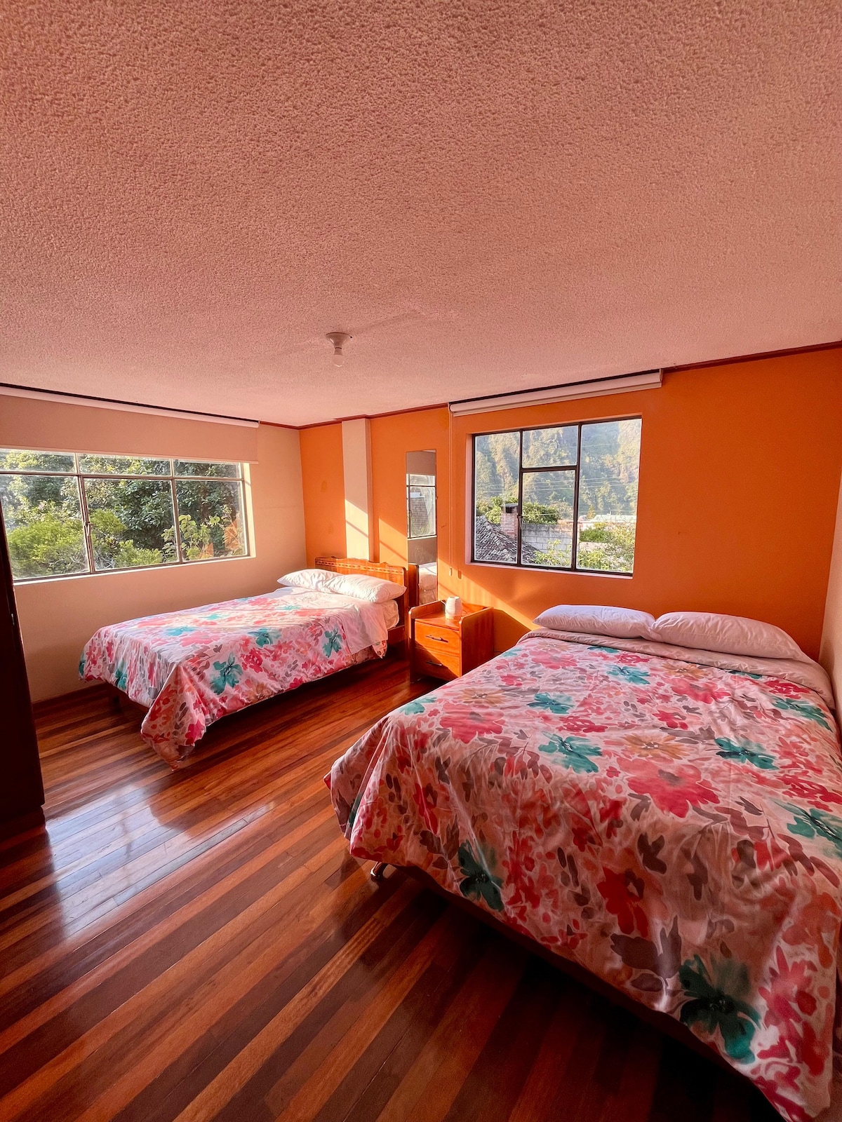 El descanso de Jazmín ofrece una estadía agradable ubicada en el Cantón Baños de Agua Santa, en el centro de Baños, una zona muy tranquila y acogedora. Cuenta con todos los servicios básicos (Luz, agua caliente, Wifi, Netflix, etc) Disponibilidad: 9 personas; máximo 10. Ven y siéntete como en casa. Garaje para 2 carros máximo BAÑOS DE AGUA SANTA; aventura, descanso y diversión.