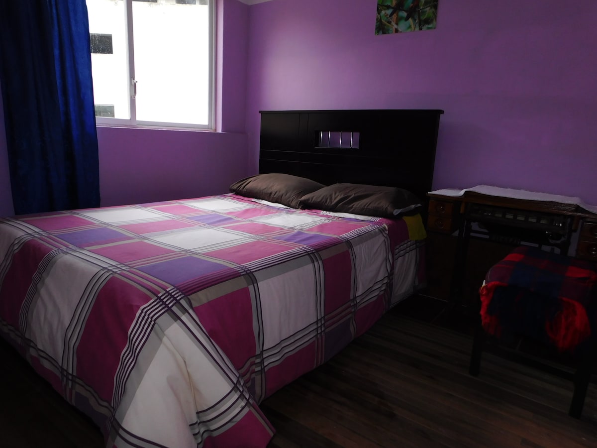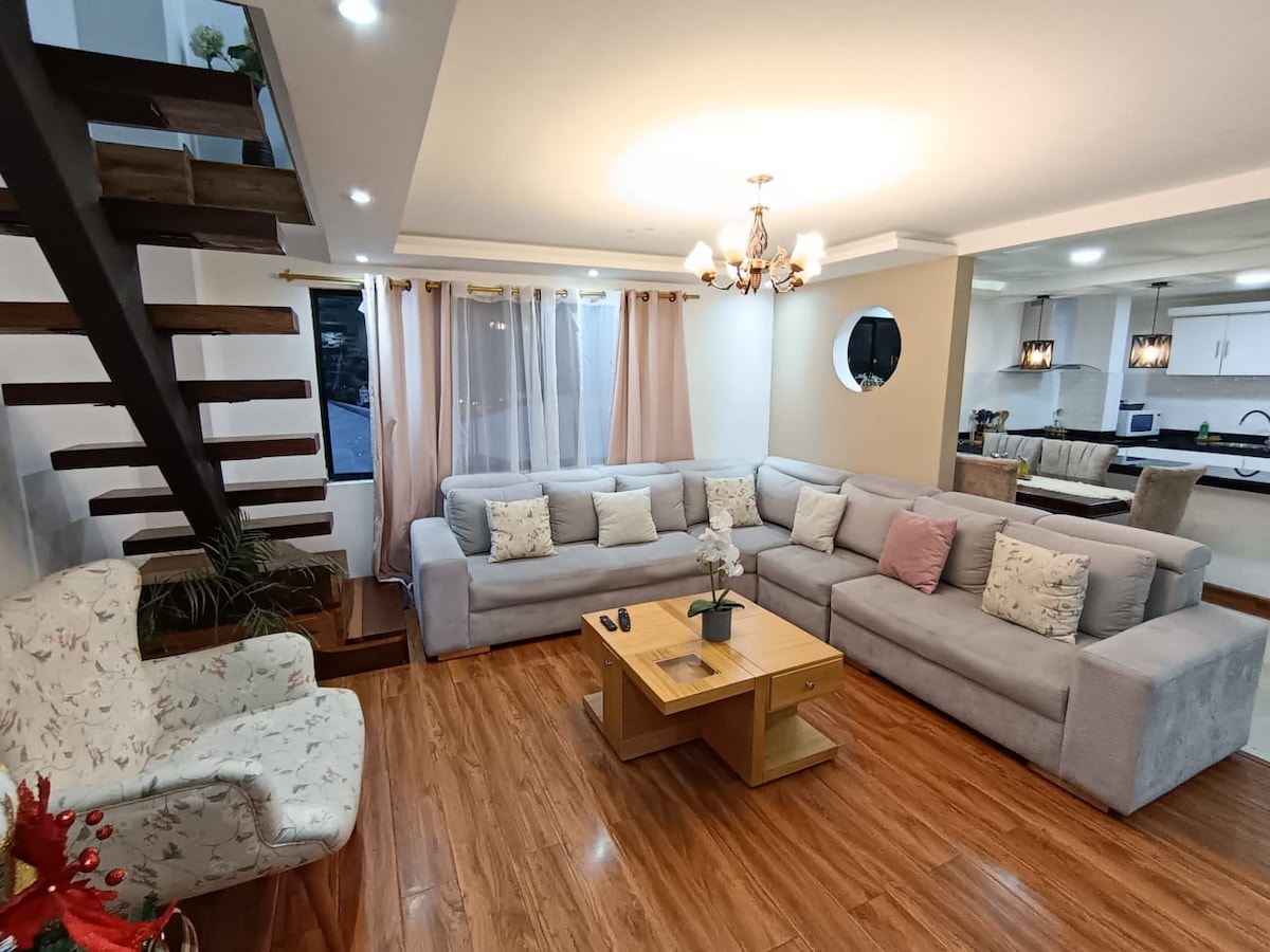 Vive experiencias inolvidables con tu familia o grupo de amigos en este apartamento muy elegante, moderno y con gran estilo. Ubicado en 3er piso, totalmente amoblado, con vista panorámica a la ciudad y montañas; cómodo en zona céntrica y muy segura. Tiene sala, smartv, comedor, cocina, baño social, 3 dormitorios, 2 baños completos, 2 balcones, acceso a la terraza. Wi-Fi, internet, agua caliente (24 horas) garaje automatizado privado para 1 auto. Camas: 3 (2 Queen, 1 Full) Capacidad: 6 huéspedes.