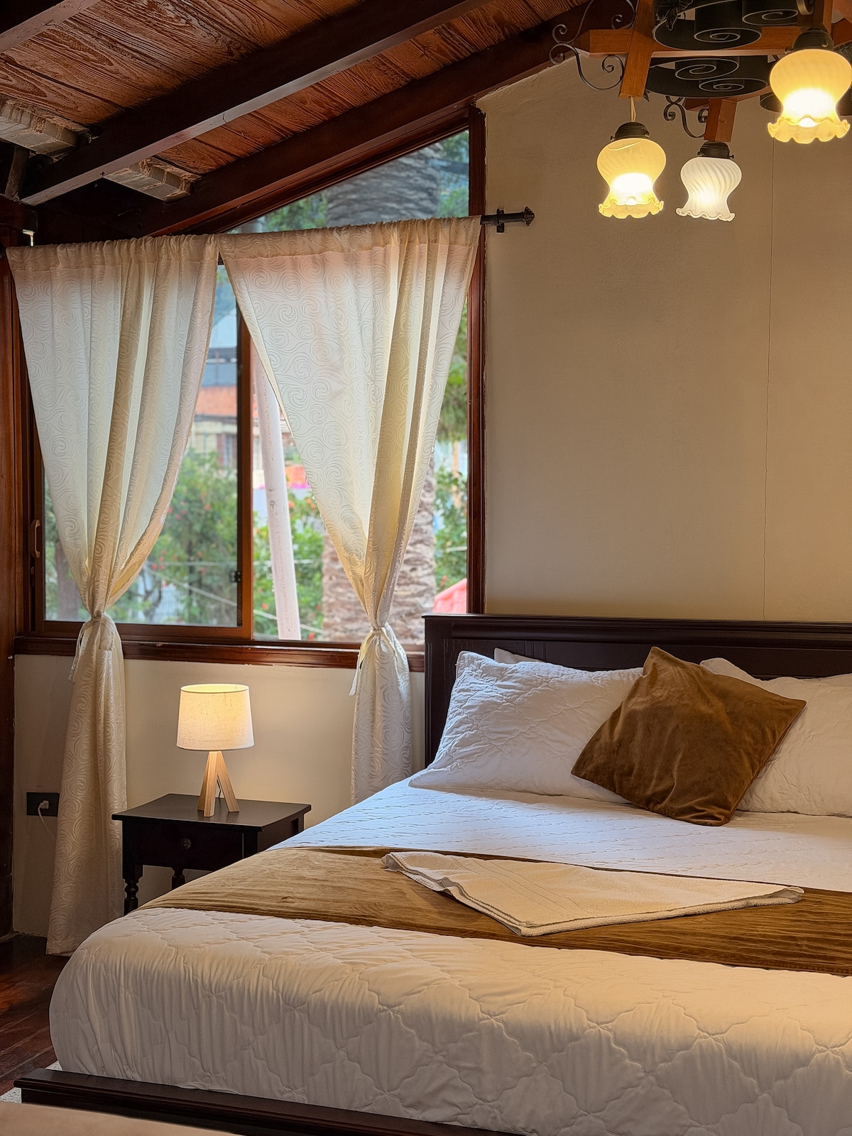 Incluye el desayuno de la casa, muy valorado por nuestros huéspedes. Casa independiente, confortable y segura, con vista al volcán Tungurahua y a cinco minutos del centro de la ciudad, muy cerca de restaurantes, cafeterías, parques y de toda la oferta turística que encuentras en Baños, un rincón andino rodeado de cascadas y montañas llenas de encanto y paisaje. Ideal para viajes de descanso, entretenimiento o trabajo en casa, en un entorno natural y único. Siempre será un gusto atenderles.