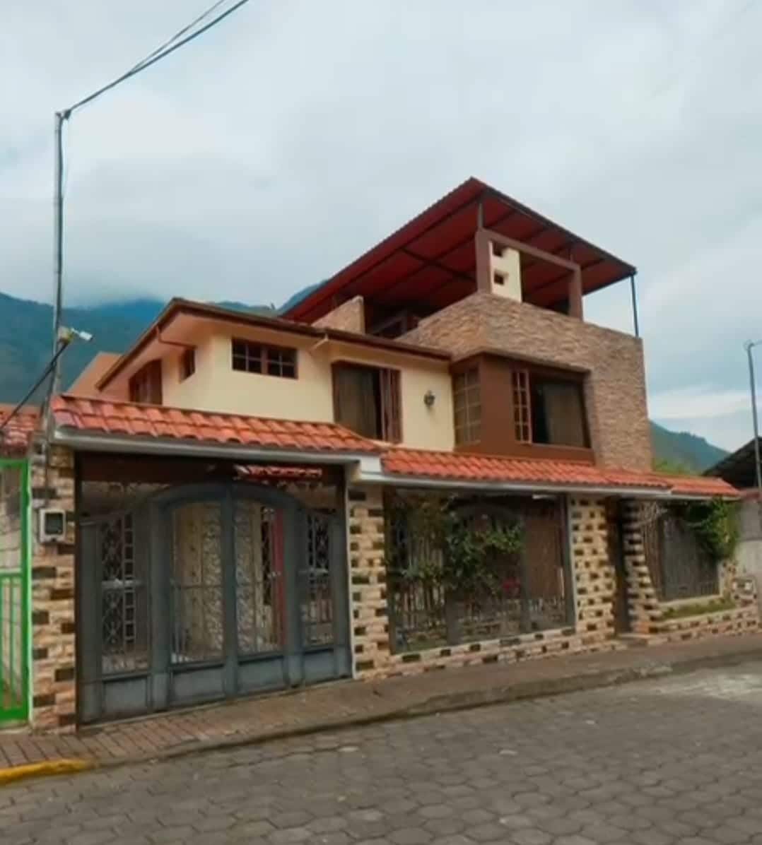Es una casa cabaña, ubicada a 7 minutos del centro de Baños ,lleno de áreas verdes y jardines ,orquídeas y diversidad de aves , rodeada de montañas y una vista impresionante a la cuenca del rio Pastaza , única para el descanso y el relax familiar. Adicional para su conocimiento necesitan subir 38 escalones de cemento y piedra rústica , al final tendrán la recompensa de la magnífica vista al río Pastaza desde lo alto y su recién inaugurada hidropiscina de agua temperada.