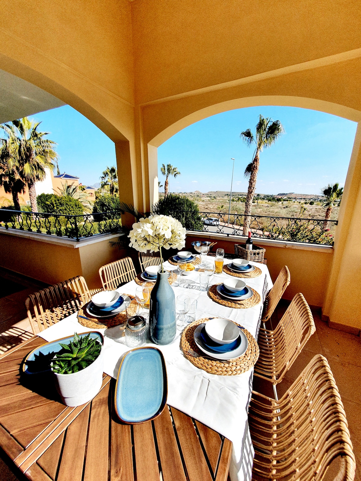 Lujoso atico en el resort de golf El Valle GNK , uno de los mejores campos de golf. Amueblado para unas vacaciones relajantes, con aire acondicionado y calefacción central que cuenta con una gran terraza con hermosas vistas Sierra de Carrascoy, campo de golf y el Mar Menor. Amueblado a un alto nivel. Preciosa terraza, muy bien amueblada, para tomar el sol, relajarse con un libro o disfrutar de una comida y una copa al atardecer con amigos y familiares con unas vistas maravillosas.