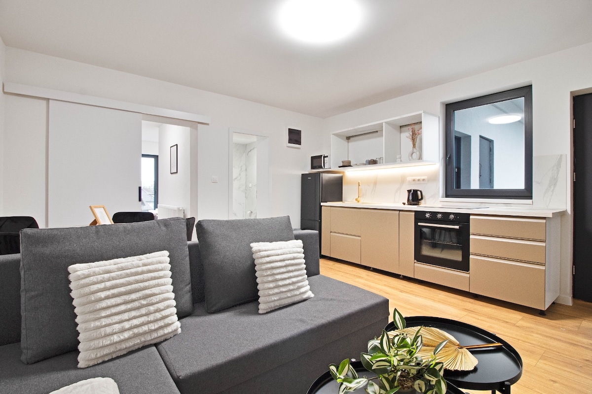 Modern ground-floor apartment in a new building, just steps from the Banská Bystrica train station and a short walk to the historic city centre. Bright and stylishly furnished, it offers comfort and convenience for business or leisure stays. Enjoy a fully equipped kitchen, fast Wi-Fi, and cozy living space. Excellent location with shops, cafés, and attractions nearby. Perfect base to explore the city and surrounding mountains.