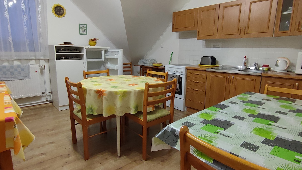 Apartmán je súčasťou Penziónu v strán. Poskytuje ubytovanie pre 4 osoby, dve v samostatnej spálni, 2 lôžka sú na gauči v obývacej izbe. Má samostatnú kúpeľňu so sprchovým kútom. Nachádza sa na prvom 2. poschodí a z jeho balkónu je krásny výhľad na okolie. Poskytujeme bohaté raňajky v hlavnej časti penziónu. Apartmán má TV-SAT, WIFI, kuchynský kút vybavený sklo-keramickou varnou doskou, rýchlovarnou kanvicou, kávovarom a chladničkou s mrazničkou.