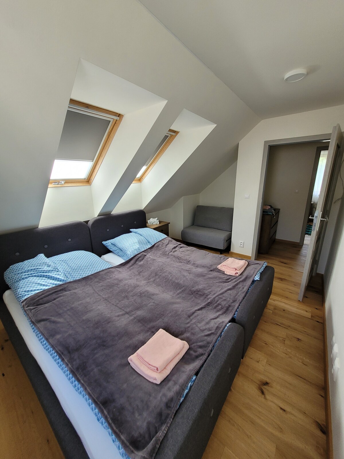 Apartmán pre 6 osôb s dvoma spálňami - jedna s manželskou posteľou, druhá otvorená "detská izba" s oddelenými posteľami. V obývačke sa nachádza rozťahovací gauč pre dve osoby. Kuchyňa je kompletne zariadená. Priestranná kúpeľňa so sprchovacím kútom zahŕňa aj uteráky a osušky. K dispozícii je kaďa na tuhé palivo či sauna. V letných mesiacoch máme vlastné člny a paddleboardy pre našich hostí. Domček pre deti, altánok, gril, ohniská, záhradné ležadlá a mnoho ďalšieho je pripravené práve pre Vás!