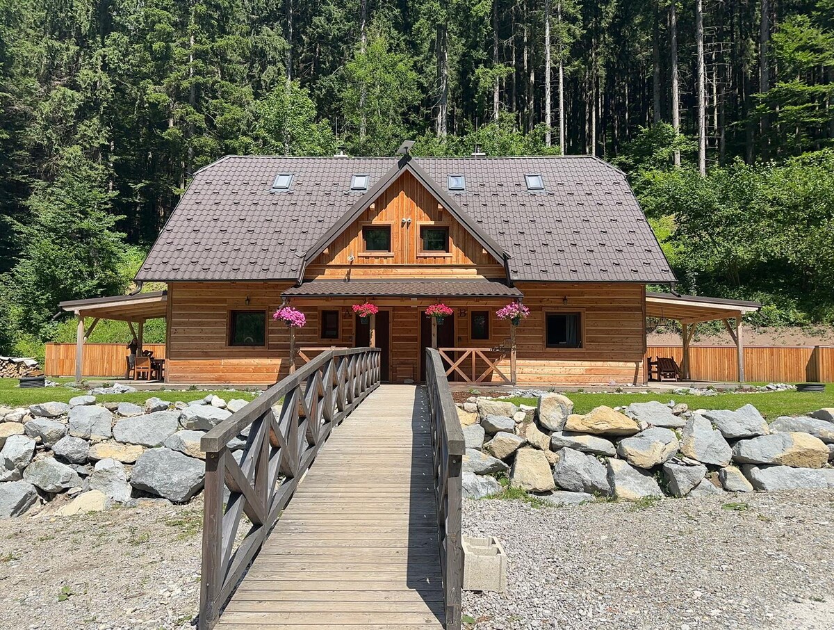 Dom má k dispozícii tri samostatné apartmány. Každý má spálňu pre 2 až 3 osoby a dvojposteľovú obývačku (apartmán 1 je s krbom), dobre vybavenú kuchyňu s jedálňou, samostatné WC a kúpelňu s vaňou alebo sprchou. K dispozícii je aj uzamykateľný suterén pre uloženie vášho vybavenia alebo bicyklov. Vlastné parkovisko a priestranná terasa s prístupom k rieke a možnosťou opekania na otvorenom ohni. Okolie poskytuje množstvo turistických možností v lete i v zime.