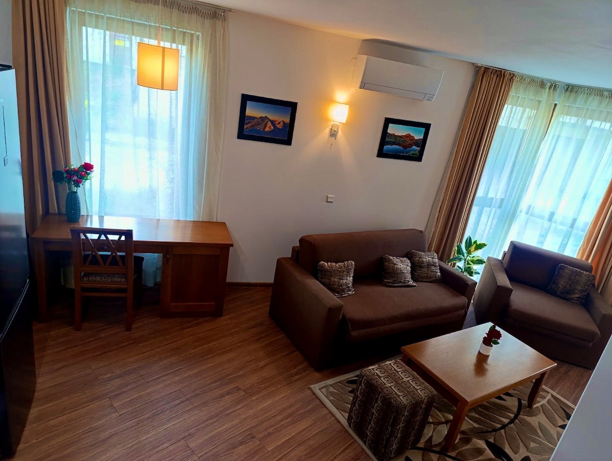 Luxury apartment, situated in the heart of Bansko- on the Main Street, just next to the main ski lift. The apartment is 70m2 and offers the perfect vacation for a family/group of friends up to 4. The apartment: - A big open space living room with fully equipped kitchen, dining table, comfortable and large sofa (full bed option), TV, high speed internet, very nice view of the city and mountains. - Spacious bedroom , with comfortable bed, large wardrobe and TV. - Modern and large bathroom.