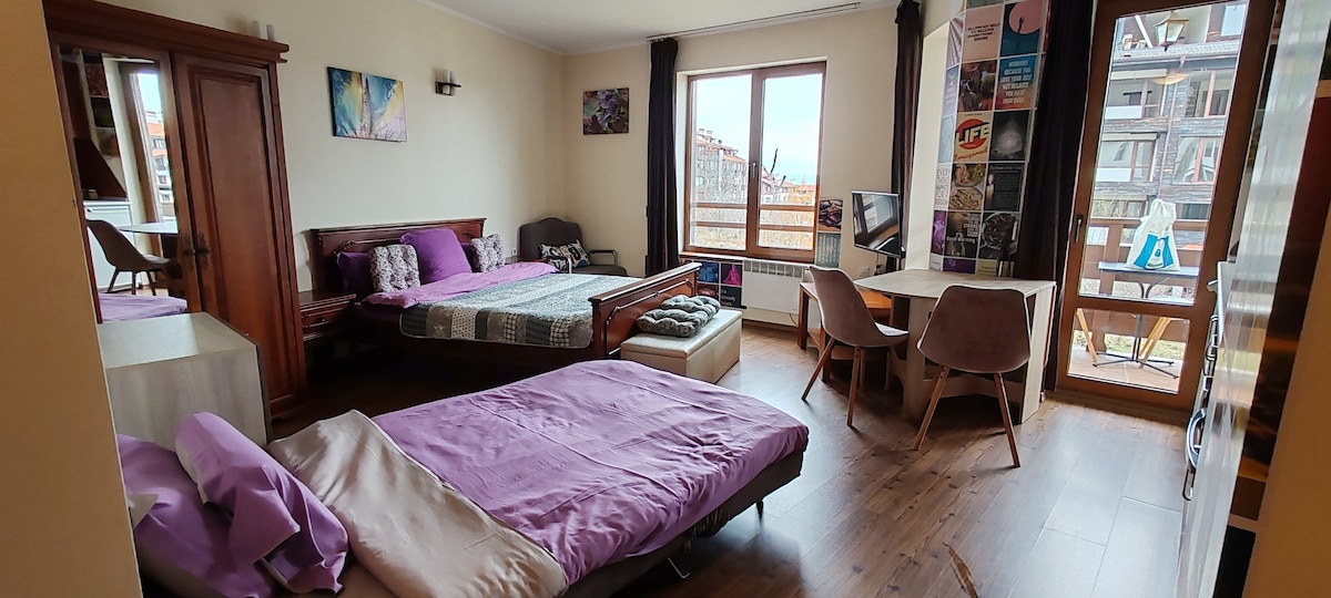 Hi, I love traveling with my family and I use airbnb myself. There is a comfortable apartment for living with kids, as well as for digital nomads (perfect internet included). Beautiful new apartment in the hotel SPA Resort St Ivan Rilski, free shuttle to ski lift, or 10-minute walk. The stylish apartment consists of two bedrooms, 2 work places, a large kitchen&living room, two large balconies and a cosy bathroom. 1 parking space is included!