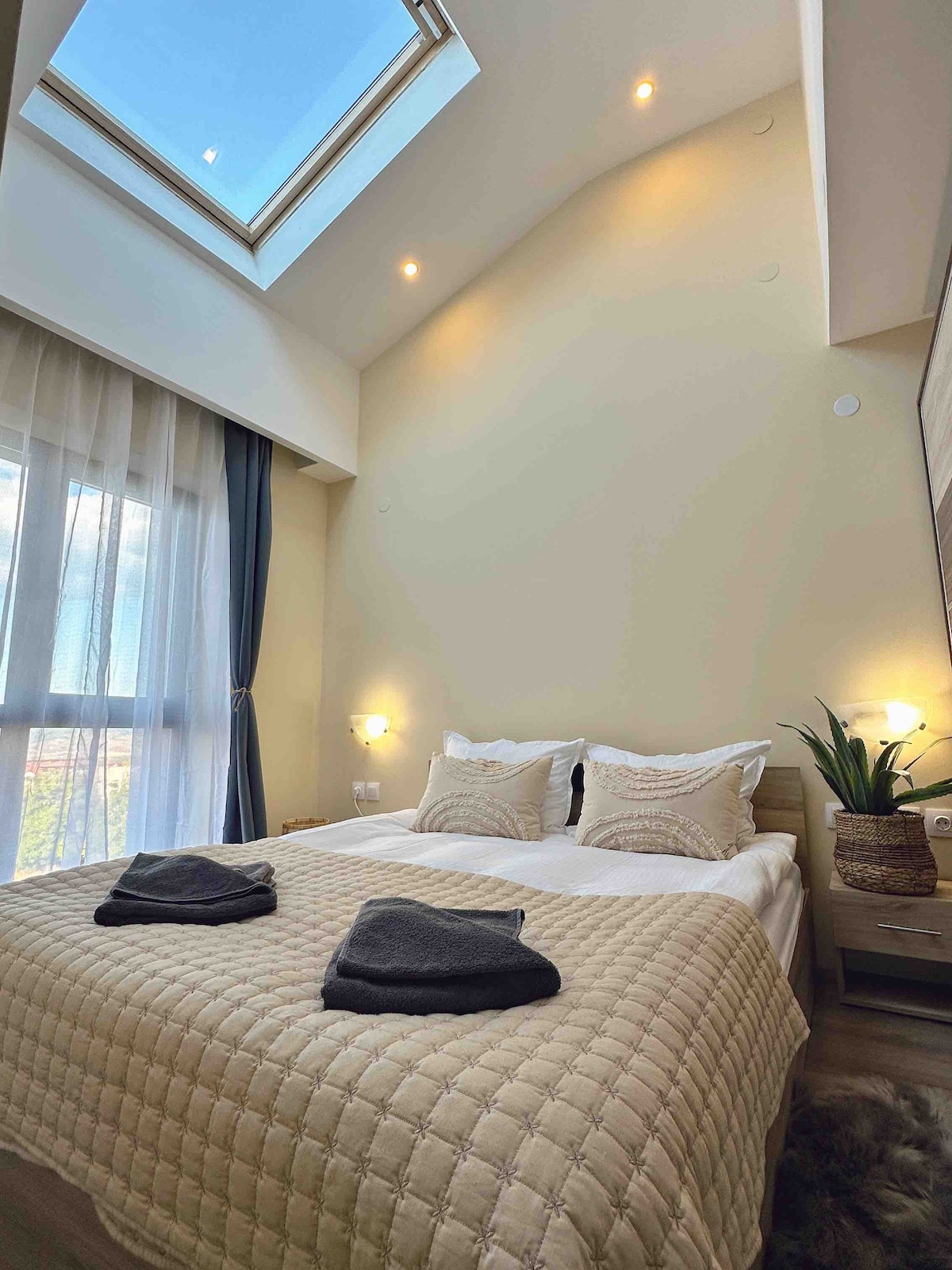 Luxury apartment, situated in the heart of Bansko- on the Main Street, just next to the main ski lift. The apartment is 70m2 and offers the perfect vacation for a family/group of friends up to 4. The apartment: - A big open space living room with fully equipped kitchen, dining table, comfortable and large sofa (full bed option), TV, high speed internet, very nice view of the city and mountains. - Spacious bedroom , with comfortable bed, large wardrobe and TV. - Modern and large bathroom.