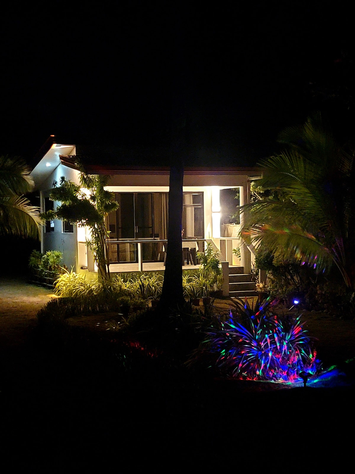 Welcome to your tropical party pad! This fully equipped apartment featuring a spacious kitchen ( extra gas charge to cook)and comfortably air-conditioned rooms set at a cool 26°C. Also fans to move cold air around. Stargazers Restobar is where the island comes alive with chef-prepared meals ice-cold cocktails. Enjoy live music some weekends and a high energy vibe that goes late into the night- ultimate party, make memories. we want guests at our Restobar.