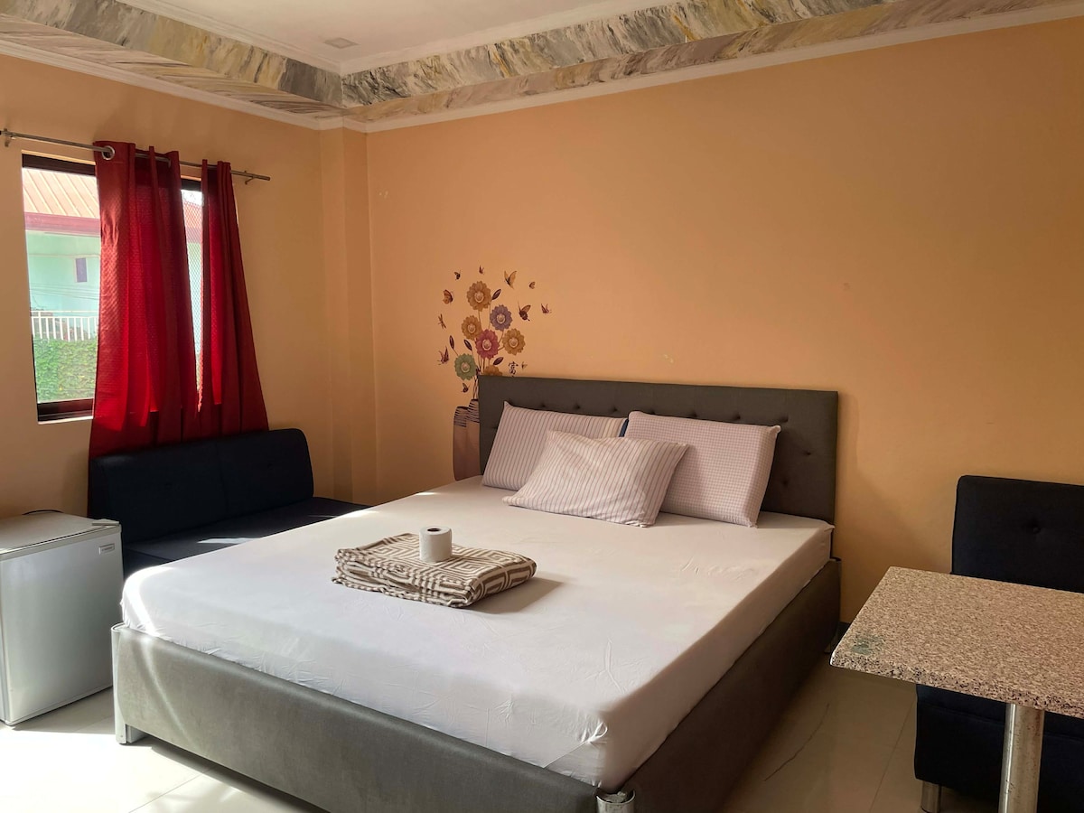 Good for 3 guests. 1-bedroom with a double bed, single bed, and additional floor bed if requested. Air-conditioned. Clean bathroom. Free WiFi. Cooking stove available for an extra fee. 3-5 min drive to the beach, Motorcycle rental available in the area Nearby: Santa Fe Port – 450m (2-min drive) Kota Beach – 1.2km (5-min drive) Ogtong Cave – 2.5km (7-min drive) Paradise Beach – 3.8km (12-min drive) Airport – 2km (6-min drive) Market – 700m (3-min drive)