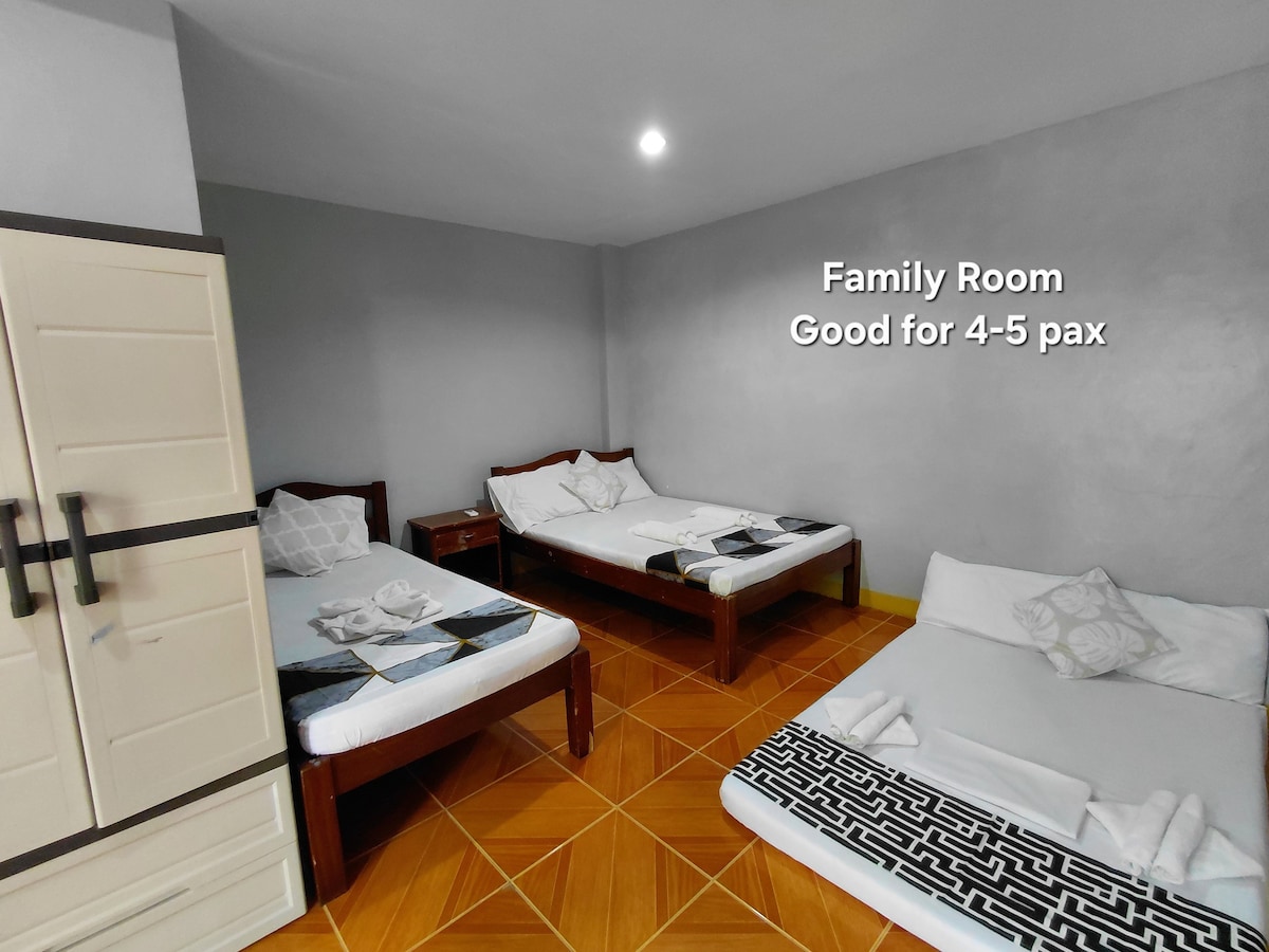 Relax with the whole family or your group of friends at this peaceful place to stay. Watch the sunrise in the morning or the sunset in the afternoon on the beach just 5 minutes away from here. Don't walk too far to get yourself a cold beer, soft drinks or food items cause there's a store just right next to the guest house. And if you're planning to buy local seafoods and cook, there's a kitchen and outdoor dining area you can use (cooking and dining utensils provided).