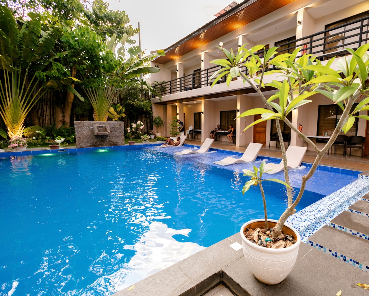 Air-conditioned room with a bunk bed and two single beds, good for 4 persons with private bathroom (inside the room). In addition, two extra beds can be added. The Barkada room is located directly at the entrance to our house and has its own entrance. It's a cool and cozy atmosphere. The location is very close to the beach (five minutes walk). We serve you a breakfast included in the price!