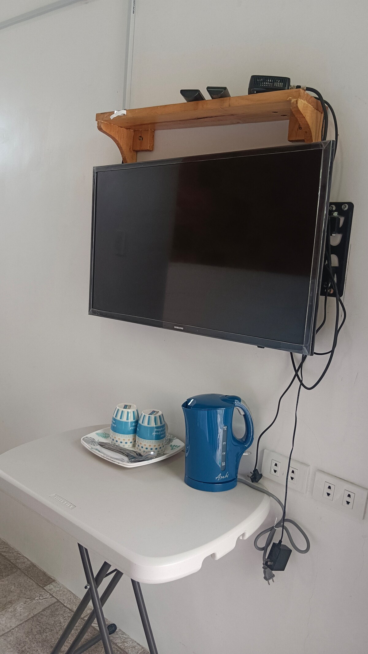 The small house has one bedroom/living room with a private bathroom, kitchen and patio. The bedroom has two beds (one double), a cabinet with a mirror, split-level quiet aircon, a ceiling fan, a TV, and a separate private entrance. The guests can use the large garden, the two native rest houses - one on top of the cliff coast - and the stairs to the sea. The room rate is for two guests. A third guest can be accommodated for an additional charge of P 800