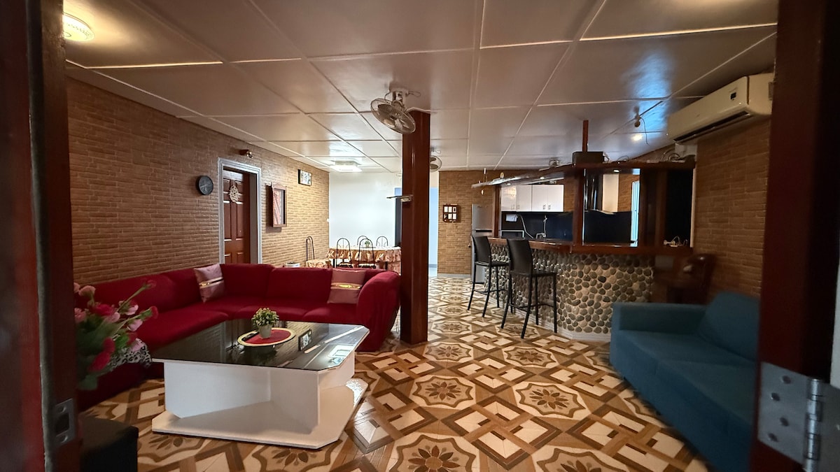 Relax with the whole family or your group of friends at this peaceful place to stay. Watch the sunrise in the morning or the sunset in the afternoon on the beach just 5 minutes away from here. Don't walk too far to get yourself a cold beer, soft drinks or food items cause there's a store just right next to the guest house. And if you're planning to buy local seafoods and cook, there's a kitchen and outdoor dining area you can use (cooking and dining utensils provided).