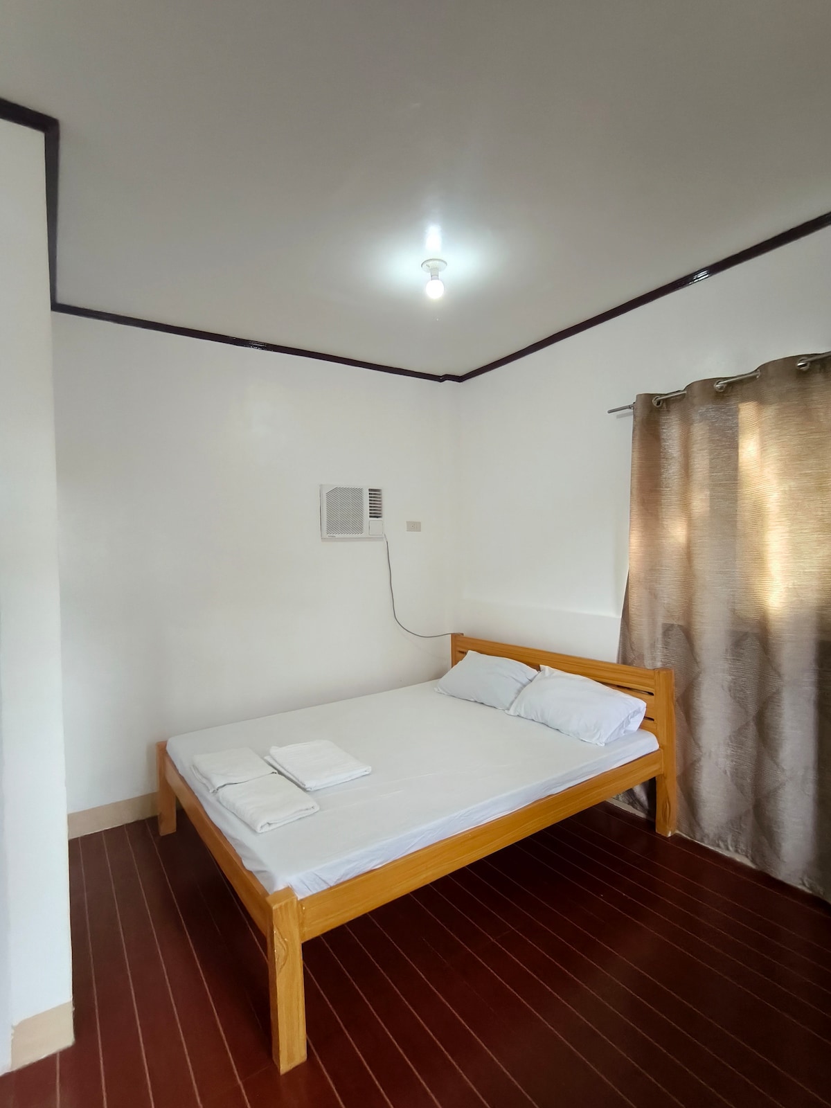 Good for 3 guests. 1-bedroom with a double bed, single bed, and additional floor bed if requested. Air-conditioned. Clean bathroom. Free WiFi. Cooking stove available for an extra fee. 3-5 min drive to the beach, Motorcycle rental available in the area Nearby: Santa Fe Port – 450m (2-min drive) Kota Beach – 1.2km (5-min drive) Ogtong Cave – 2.5km (7-min drive) Paradise Beach – 3.8km (12-min drive) Airport – 2km (6-min drive) Market – 700m (3-min drive)