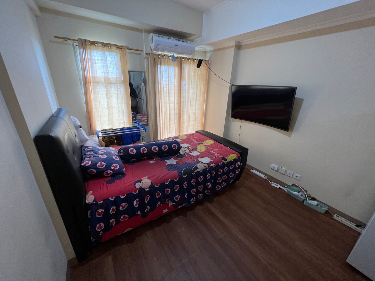 Studio apartment at high floors 19m2 Rose tower Facilities : AC WATERHEATER REFRIGERATOR RICE COOKER MINI PAN DISPENSER POOL GYM NEAR AEON MALL, ICE BSD, AND SWAB TEST