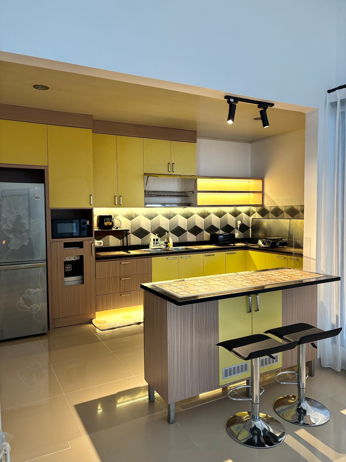 A luxury fully-furnished 1 bedroom apartment with a King Size Bed, located in Pantai Indah Kapuk (Gold Coast Apartment Honolulu Tower) with a mangrove view. This apartment is equipped with kitchen essentials, smart tv with Youtube and Netflix and accesses to services such as: An outdoor & indoor swimming pool, jogging track, and a gym & sauna. Laundry services and convenience stores are located near the lobby of the apartment. Note: Netflix account is provided
