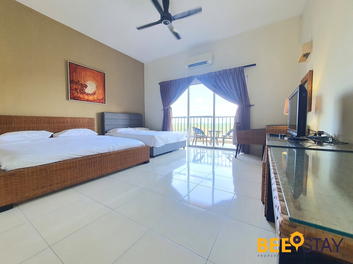 Gold Coast Morib Resort offers several facilities like cafes, drop off point, outdoor water theme park, outdoor and indoor F&B outlets and various retail and convenience stores within the boundary itself. For outdoor games, there is a Badminton Hall and a Tennis court. The bedroom setting is as follows: One Queen Bed and Two Single Bed. One Bathroom. PS: Additional Charges apply for Theme Park, tickets can be purchased at Counter. Weekday:Adults RM27,Child RM18. Weekend:Adults RM37,Child RM21.