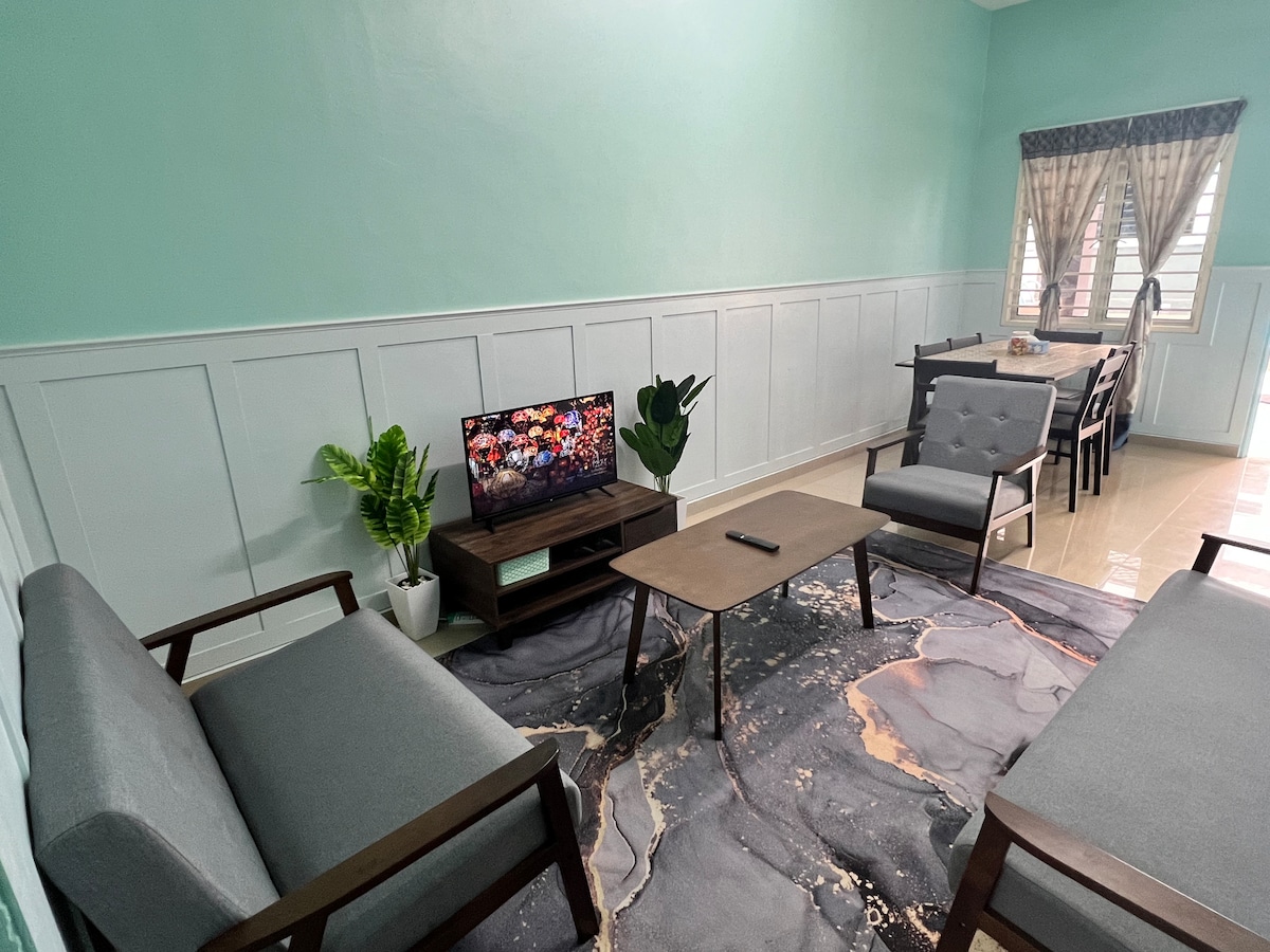 This house is a terrace house corner lot. We provide 3 rooms. Bedroom 1 have Super King Bed with Aircond . Toilet and water heater. Bedroom 2, Queen Bed with Aircond. Bedroom 3, 2 Single Bed. Provide Ceiling fan only. Others service , we have wifi Internet Cooking stove Rice Cooker Water filter Coway cold warm hot Electric kettle Fridge Iron board and iron Television Pot Dishes, cups, mugs Spoon, forks Hangers Free parking. 2 cars in porch. Others car outside area free parking
