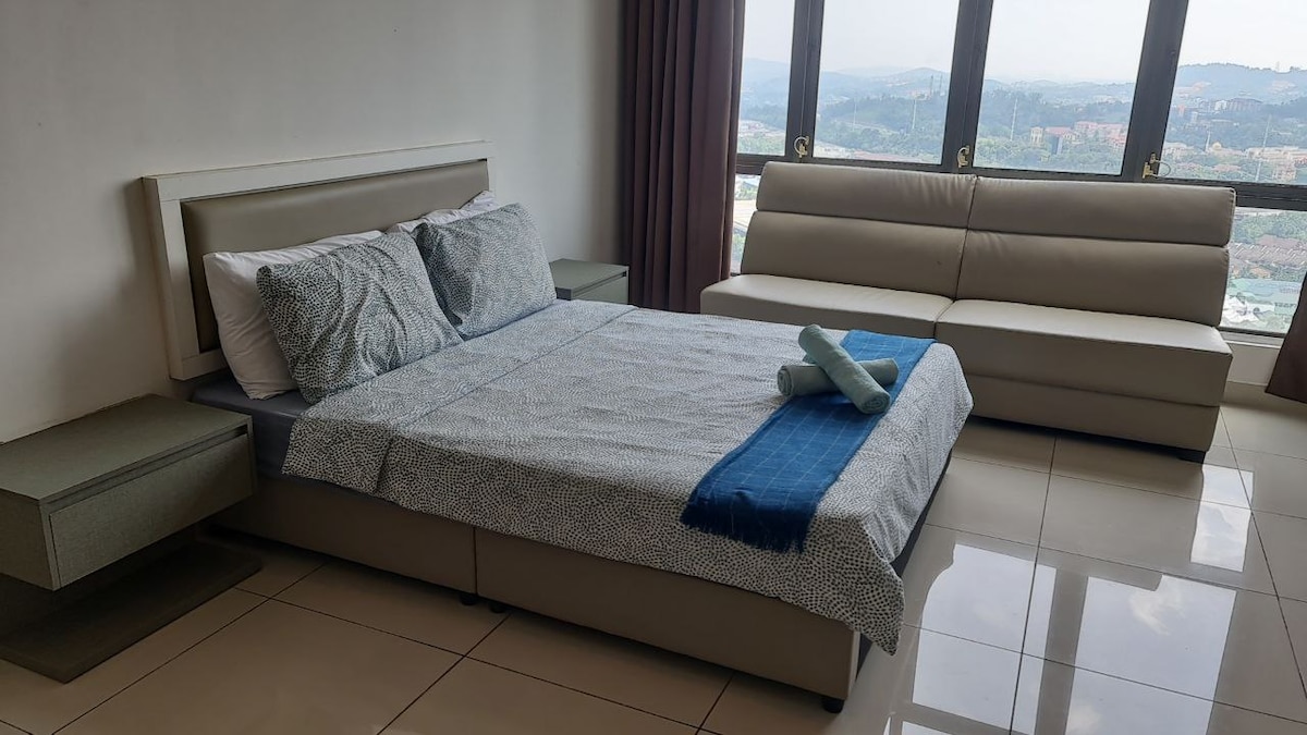 3 bedrooms. 3 Queen beds. 25min to Airport. 2 indoor parking. Netflix, Disney Hotstar, BBC Player, YouTube, unifiTV, 500mbps internet with Wifi & LAN. Gem-in Mall - Mamak & 7-Eleven. Cyberjaya Hospital & Tamarind Square (3 min walk) - Village Grocer, BookXcess, MrDIY, restaurants. UOC & MMU 1 km 3min, Limkokwing Uni 6km 8min Mall : DPulze 3km 5min, Shaftsbury 4km 5min, IOI City 16km 15min, Pavilion 34km 30min, MidValley Megamall 31km 25min
