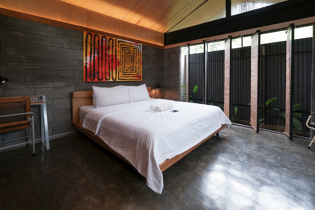 Unique fusion of the Limasan, a traditional Javanese architecture with modern design, unfolds an eclectic yet authentically grounded experience. The villa offers an intimate sanctuary, lush garden, a breezy patio, and thoughtfully designed interiors that whisper calm amid greenery. Just beyond the city's reach, Krebet Village invites you to slow down. In its quiet pace, you’ll rediscover simplicity, presence, and what’s often overlooked in our busy lives.