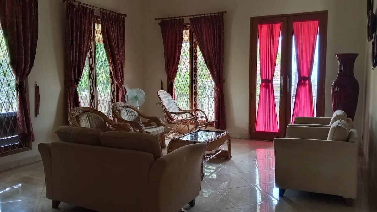 Akomodasi nyaman dgn 3 kamar tidur, 2 kamar mandi, ruang tamu, dapur dan patio. Rumah terdiri dari 2 lantai dengan ornamen kayu yang memberi kesan natural. Lokasi mudah dijangkau, hanya 1 menit dari jalan raya dan 10 menit dari bandara. Di sekitar penginapan banyak terdapat rumah makan, toko kelontong dan minimarket. Rumah nyaman, bersih dan terawat, yang berada dalam komplek dgn pengawasan security one gate. Pilihan terbaik untuk sewa rumah harian dengan harga menarik lengkap dengan fasilitas.
