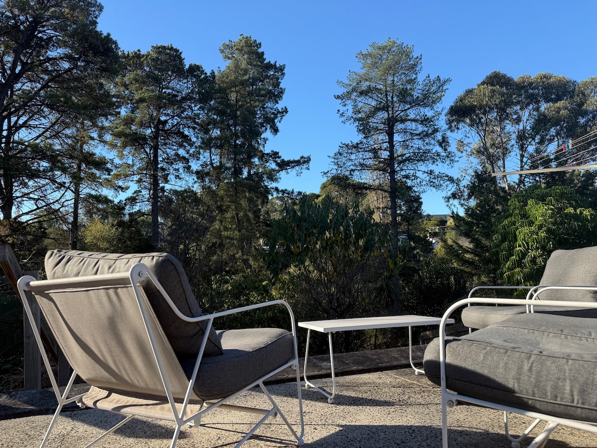 A stylish and cozy retreat in the Nillumbik Shire - Green Wedge - Apollo Parkways Estate, Greensborough. The guest house has a spacious bedroom and ensuite, a comfortable lounge with kitchen and laundry facilities. Garaged parking available for guests. Close to many different attractions and amenities including the beautiful Plenty Gorge and Plenty River trail. Greensborough train station and Plaza are a short 5 minute drive away with RMIT and La Trobe Universities both within cycling distance.