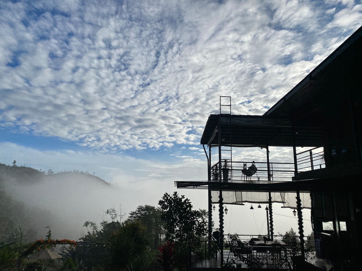 Garden By The Clouds located on top of the hill where you can find magnificent views by white clouds floating in the sky in early morning. In the morning, you can see the magical beauty of sun rise when first rays of a new day get through the clouds, hear the sound of nature with hundreds of bird song, and feel the fresh and cozy ambiance surround you. In the night, you witness an mavelous views over the town, and be embraced by the giant crystal clear sky with thousand of stars sparkling ..